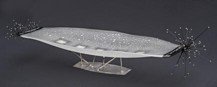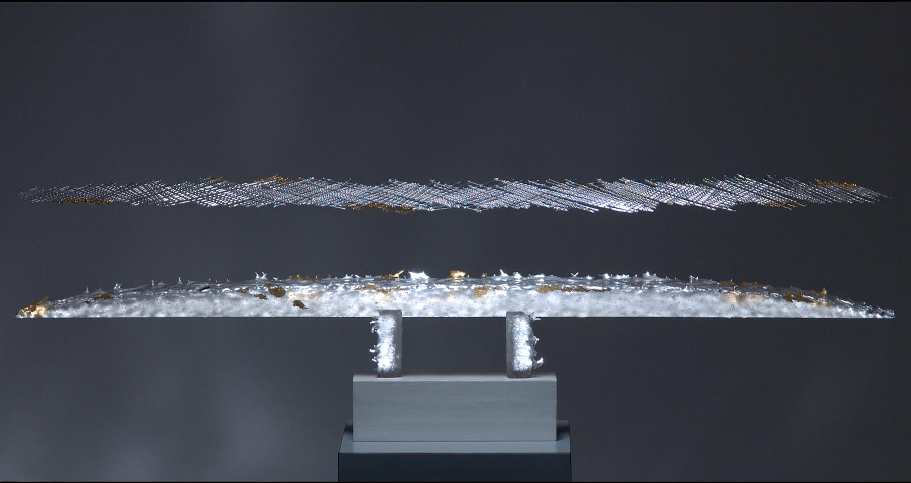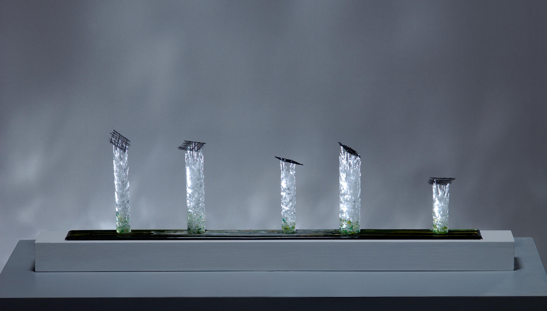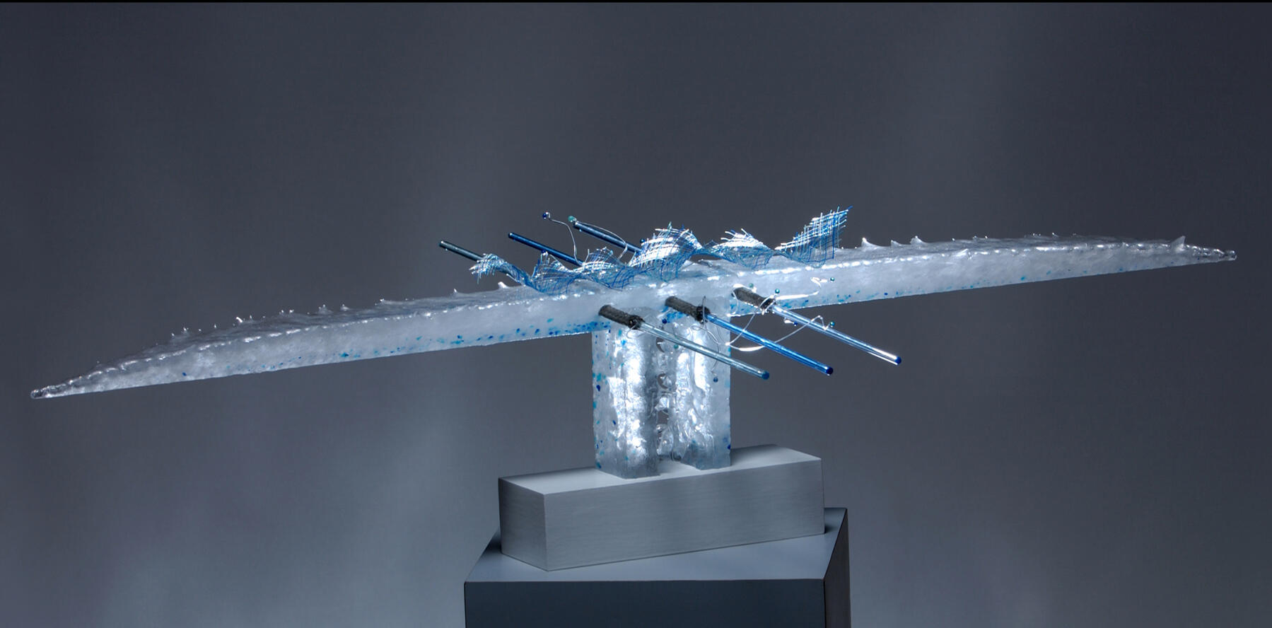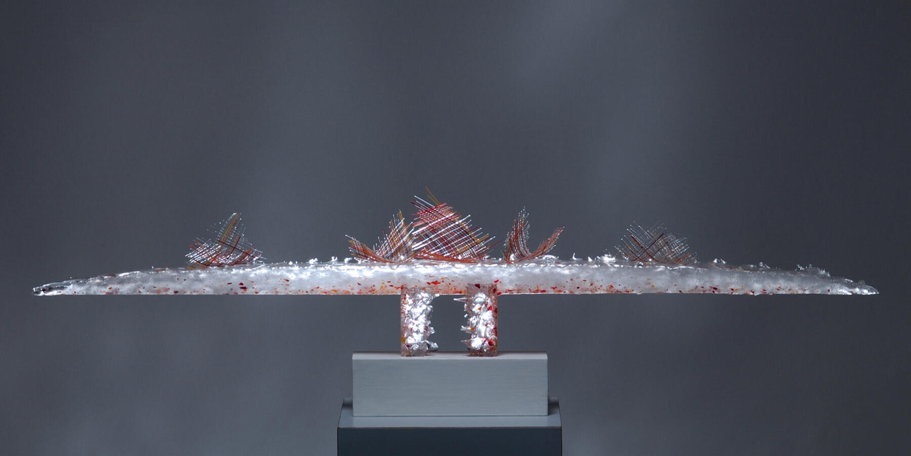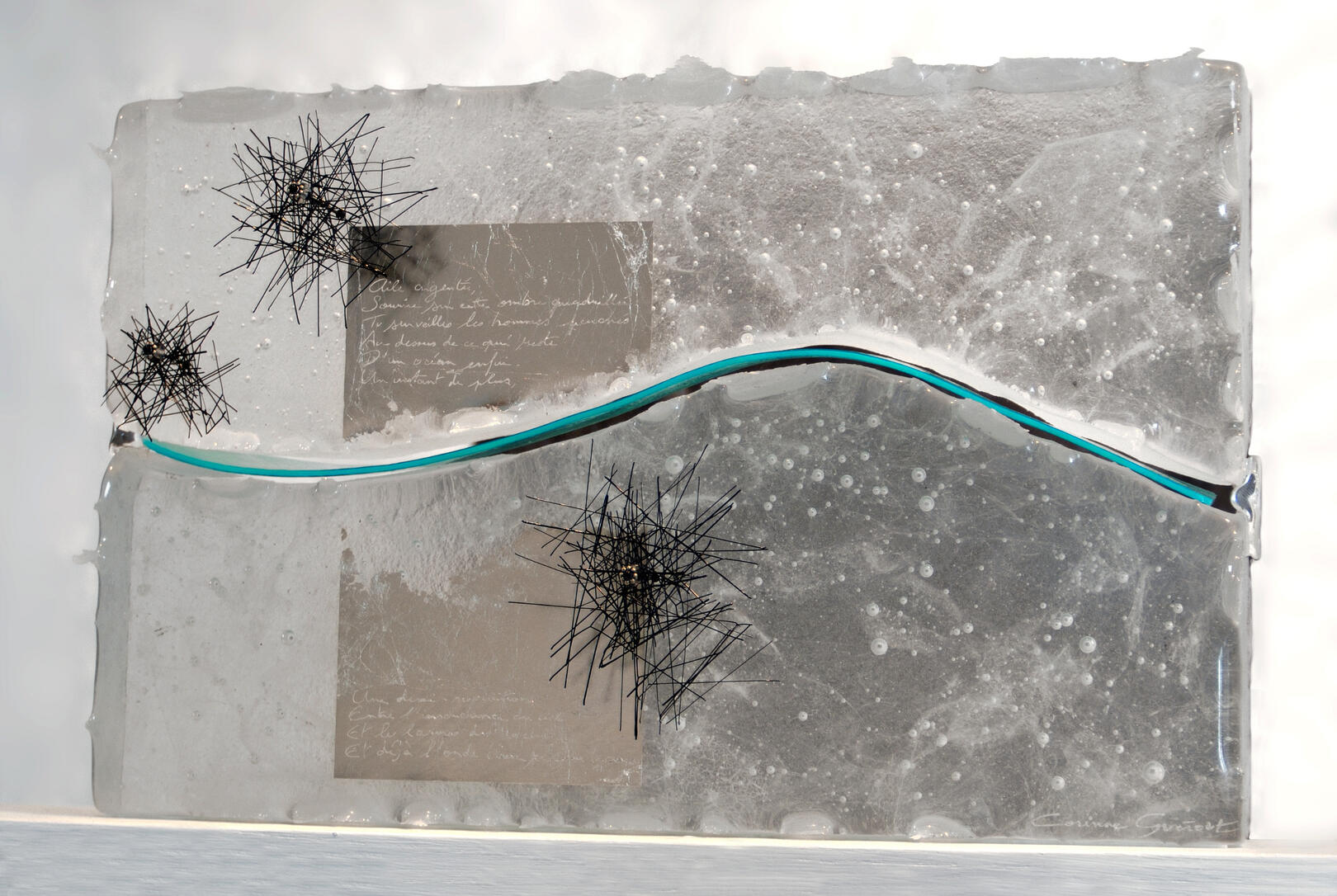 Ici se retrouve l'alliance de deux types de verre dont l'approche et les techniques sont très différentes: verre borosilicate et verre de Murano.